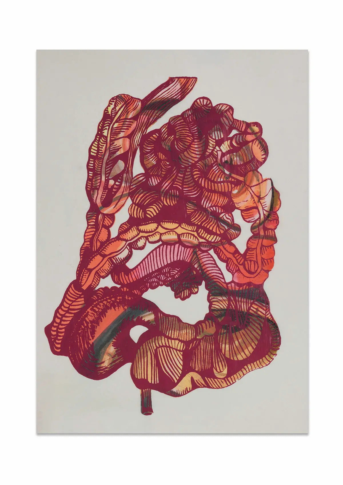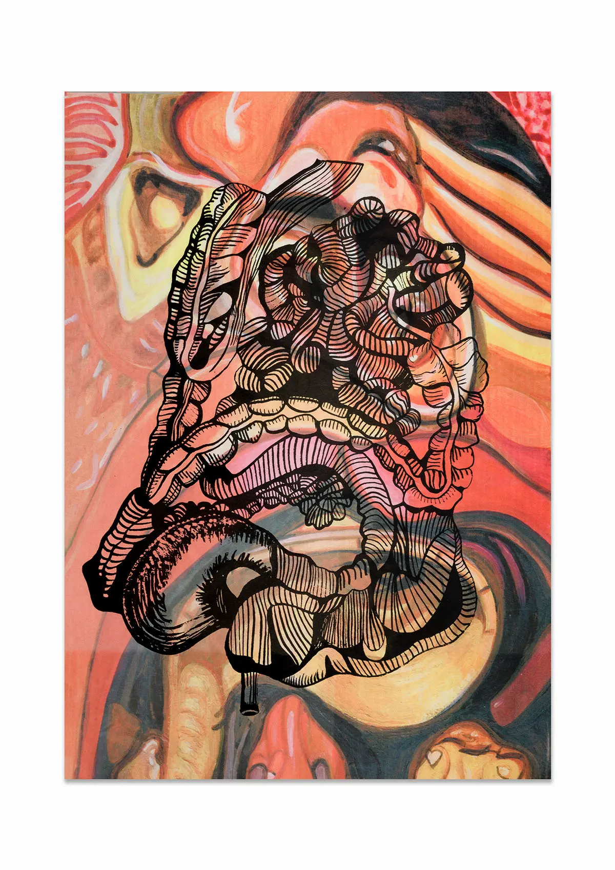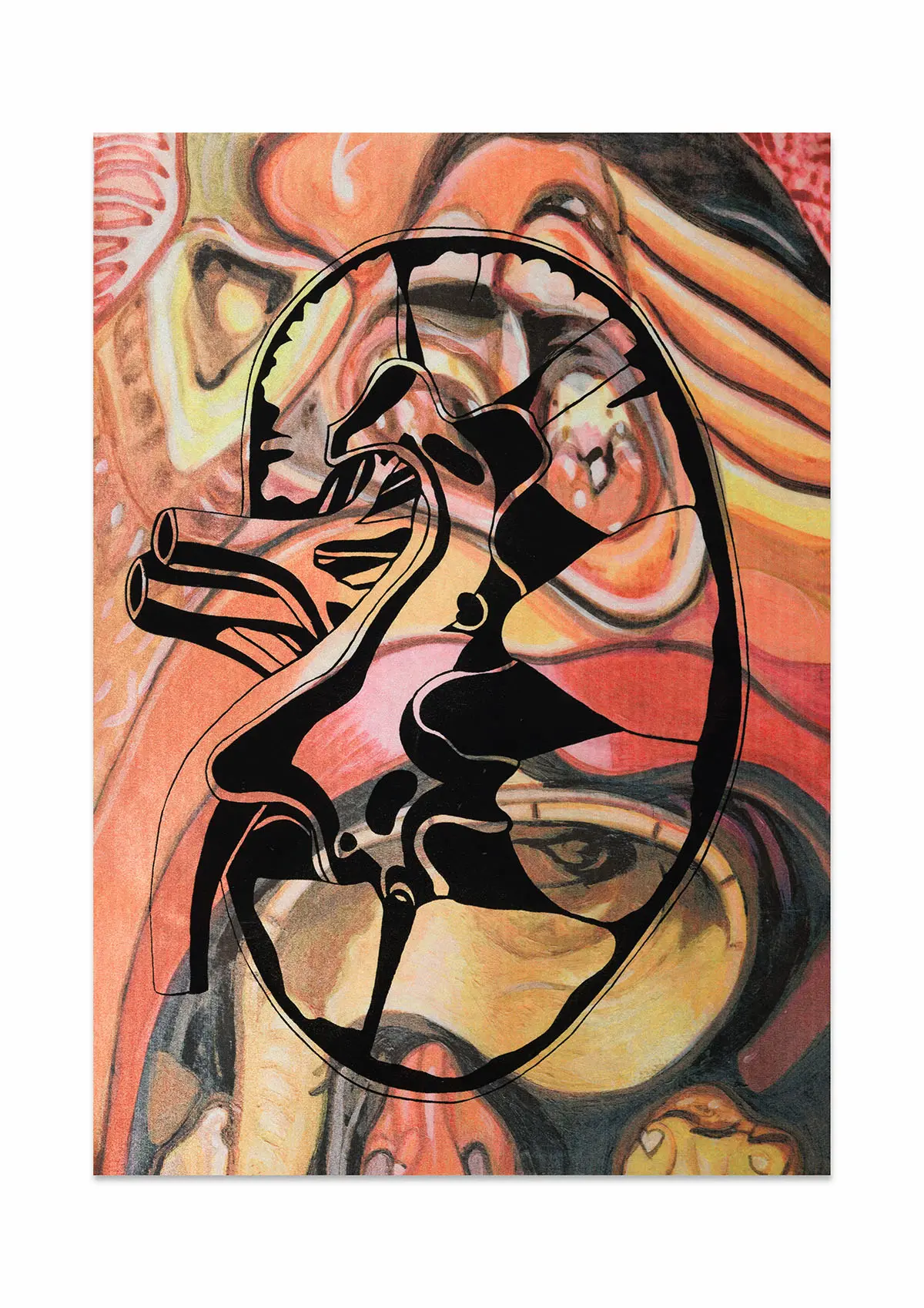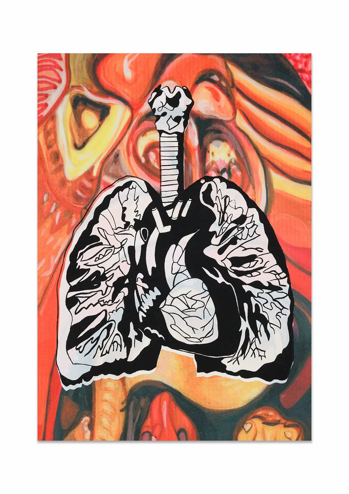In this project, I drew inspiration from The Body Intelligence Collective, a dance group whose stage performance, Digital Umbilical, engaged the audience’s bodily processes as a rhythmic foundation for movement. Inspired by their concept, I set out to visually enhance and redesign their costumes. It was important for me to communicate their central focus on bodily anatomy while preserving the decorative richness historically associated with stage performance wear. To achieve this, I treated the dancer’s body as a canvas, reinterpreting medieval anatomical illustrations, often characterised by stylised inaccuracies due to the religious persecution of human dissection at the time, and merging them with traditional embellishment motifs found in early-twentieth-century dance costumes, such as woodblock-inspired patterns. Using medieval anatomical studies as a starting point, I created stylised ink paintings of internal organs, including the heart, kidneys, intestines, and lungs. These illustrations were then developed into textile print variations and sampled on different metallic Lycra fabrics using heat-press and screen-printing techniques in A4, A3, and A2 formats.